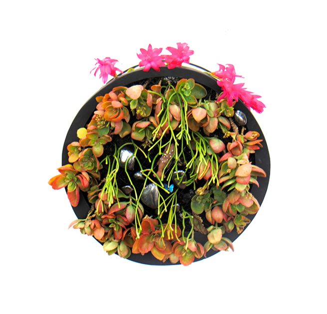 Inspirados por los Jardines Colgantes de Babilonia y la filosofía Zen, los Cuadros Biónicos son una creación única, hecha a mano y con materiales reciclados. Son cajas de hierro que contienen tierra, plantas y una serie de fragmentos pictóricos, escultóricos o fotográficos que pueden moverse y ajustarse empleando los imanes que los adhieren a la estructura. Los Cuadros Biónicos, al contrario que un jardín vertical común, no necesitan electricidad para funcionar o un sistema de ventilación eléctrico. La ventilación ocurre de forma natural a través de la red de malla que contiene la estructura, y la favorecen los imanes de neodimio colocados alrededor del cuadro.